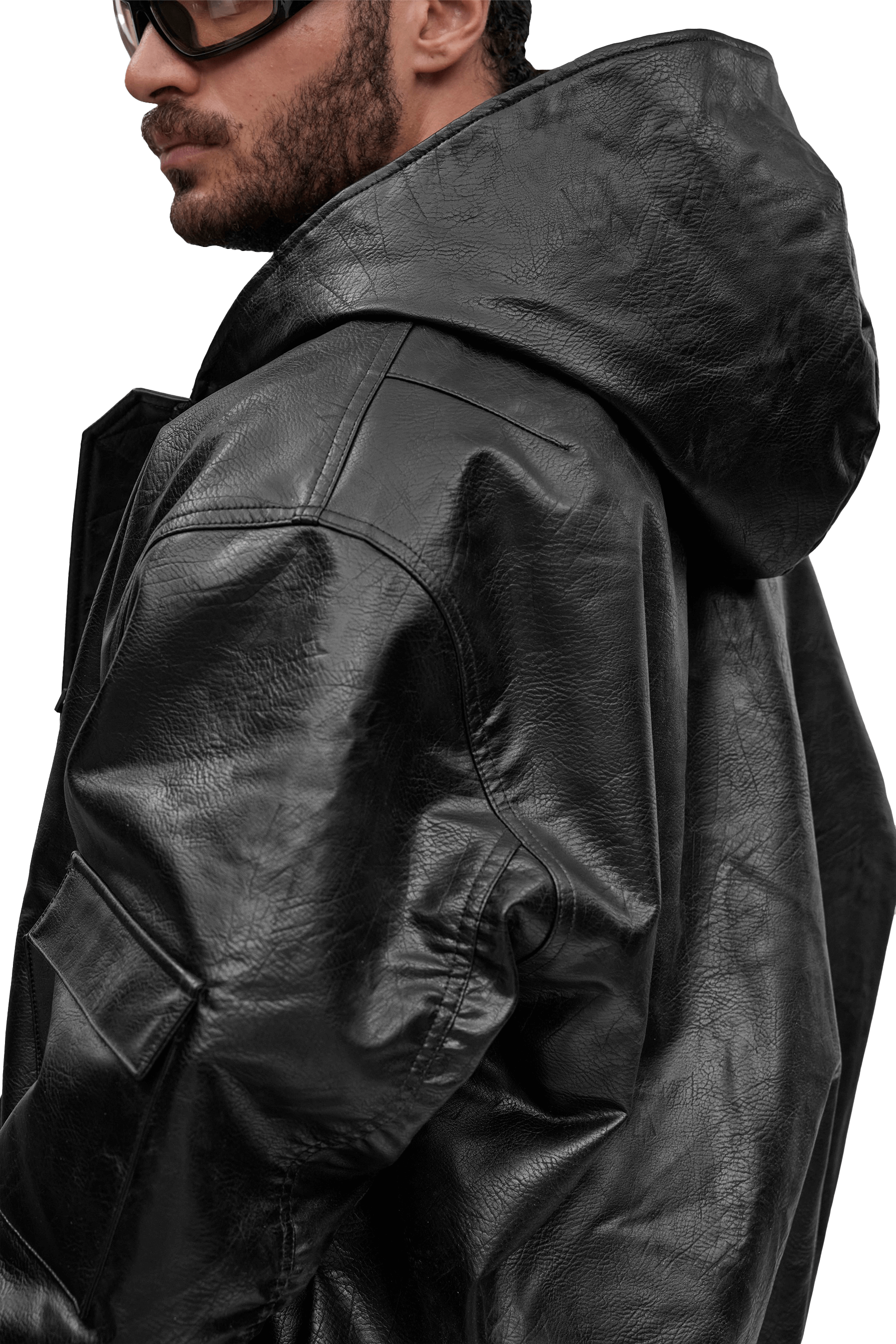 עור טבעוני מעיל בומבר גזרת בוקסי