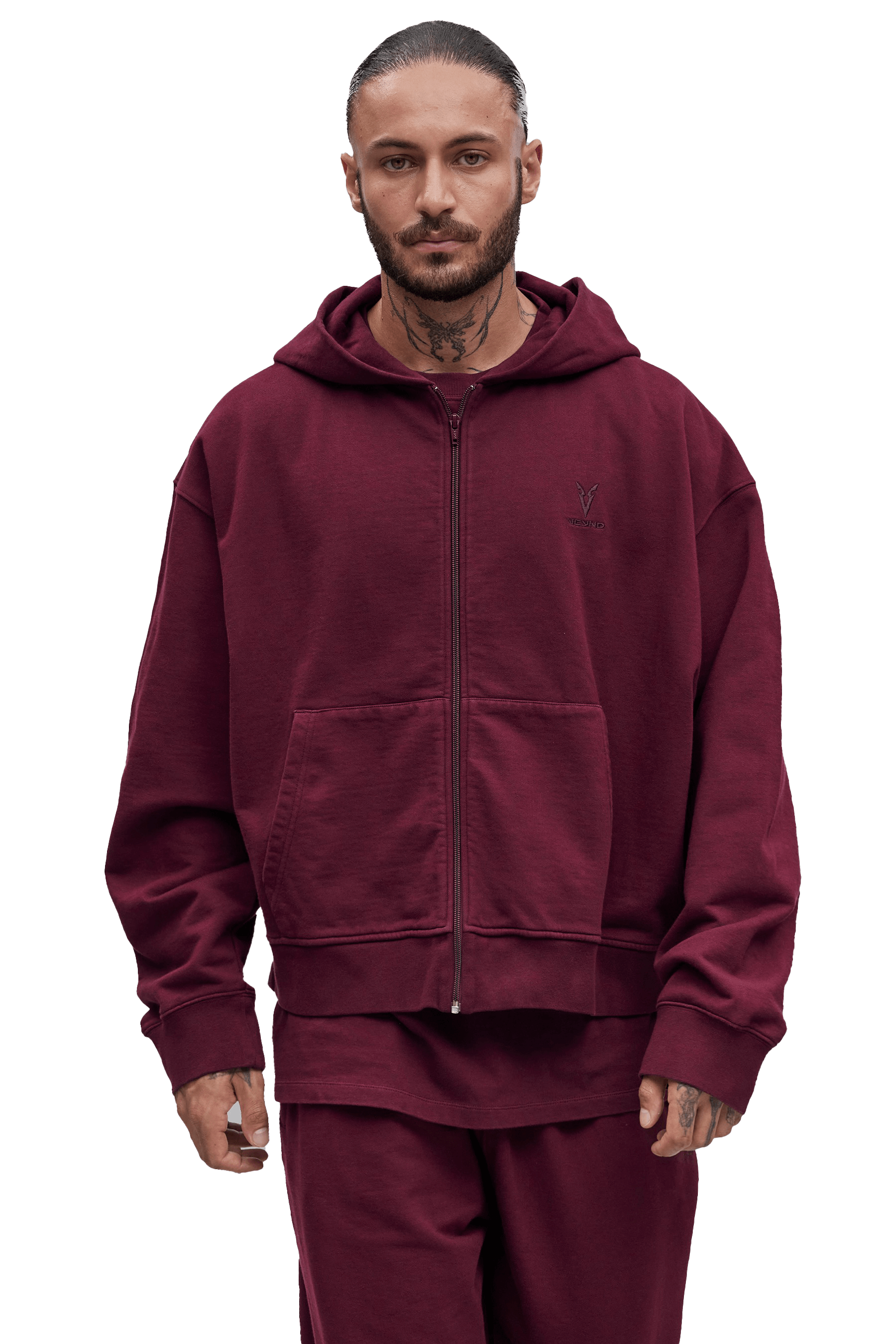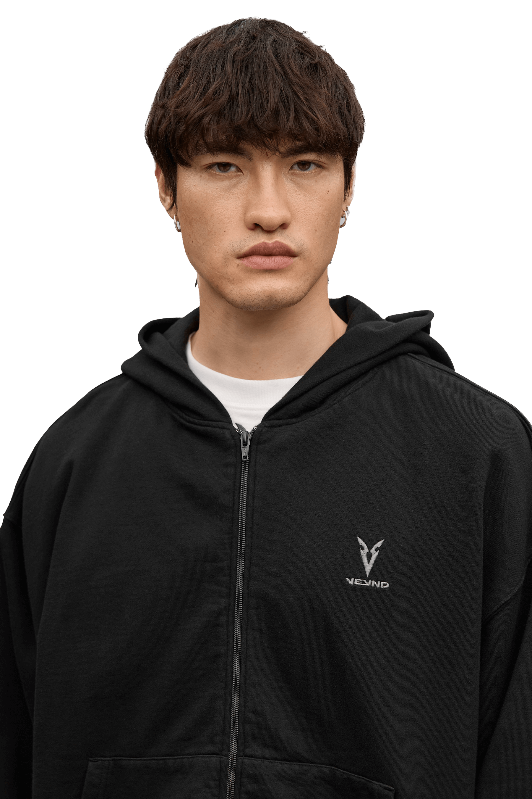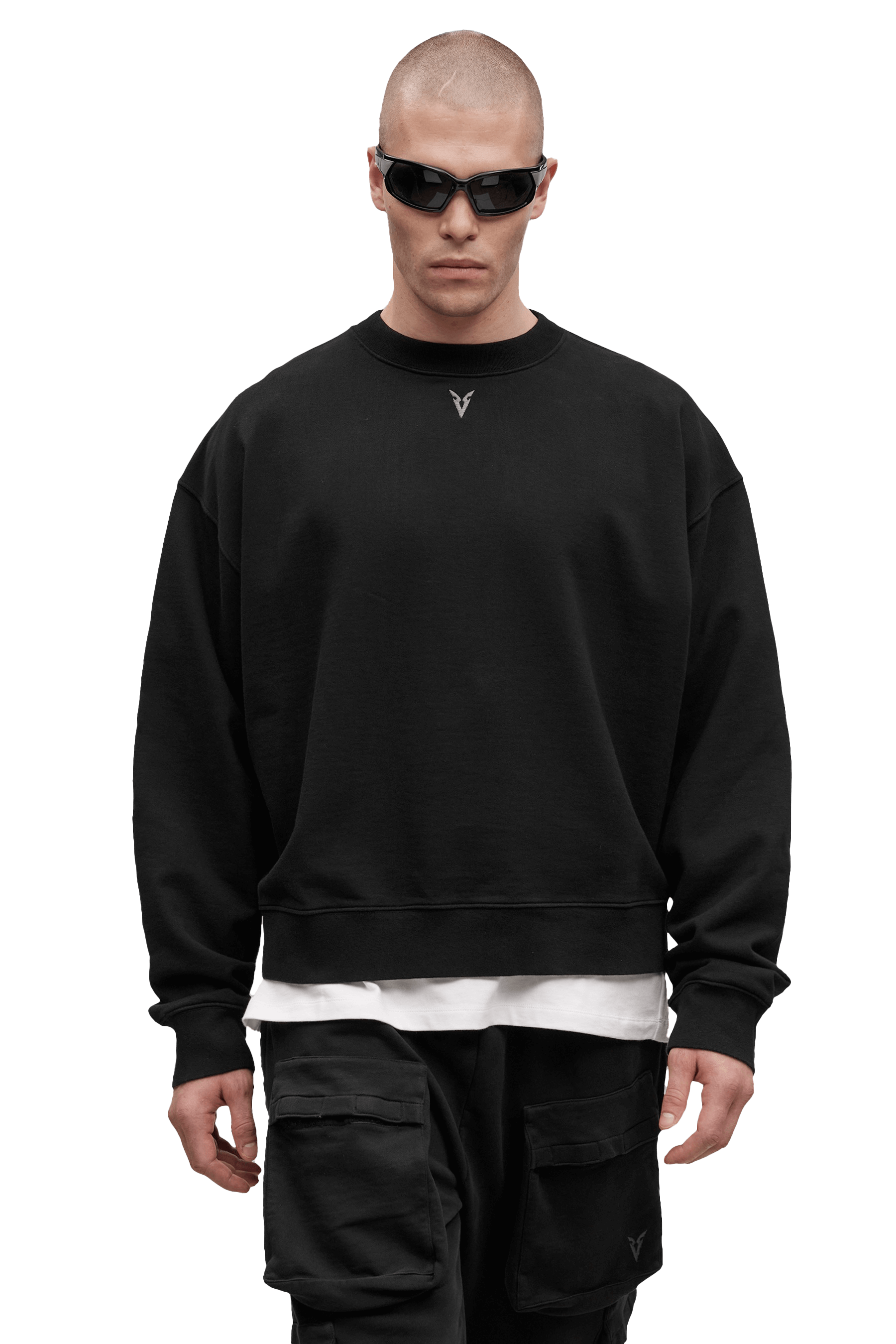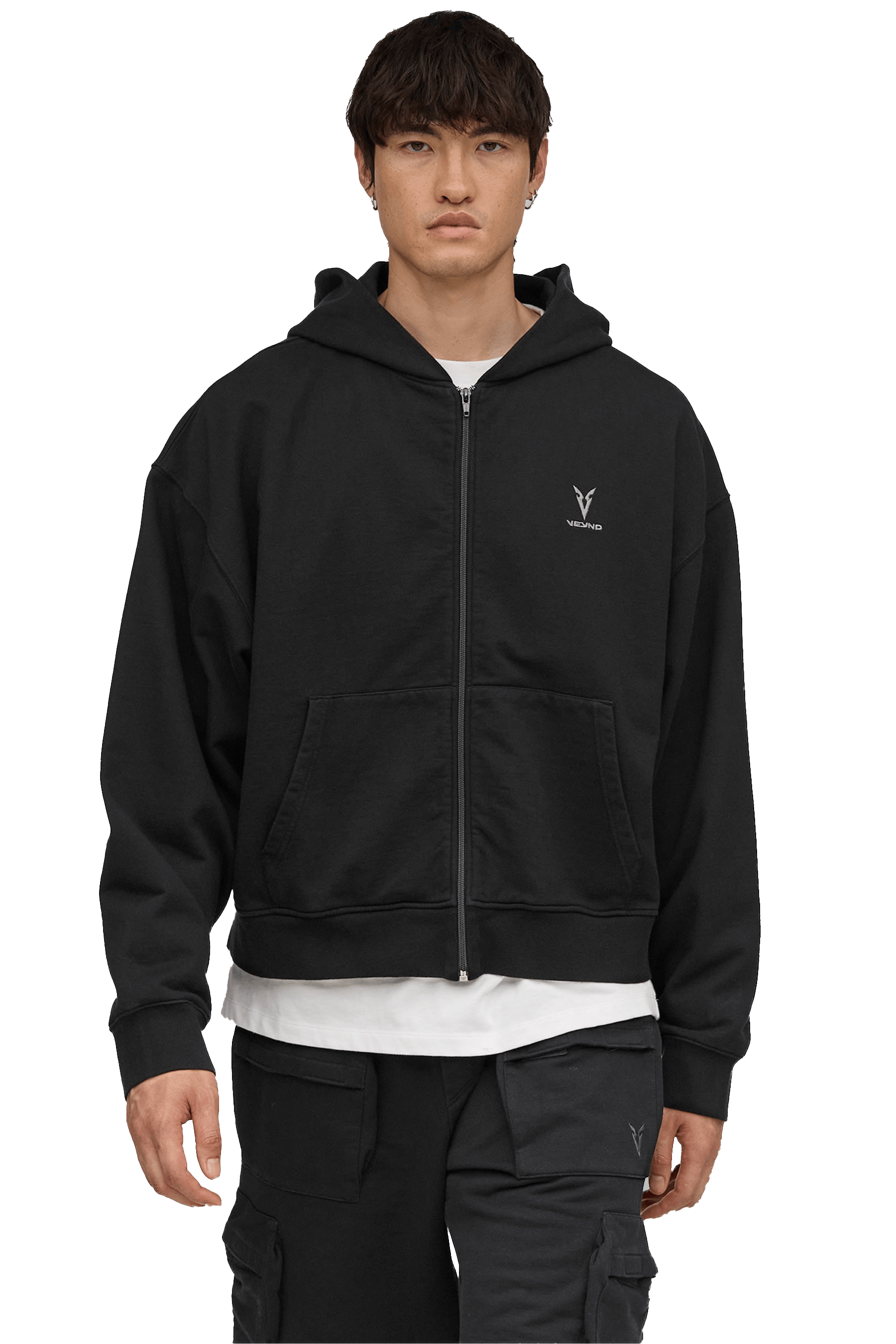 סווטשירט רוכסן מלא גזרת בוקסי- Black