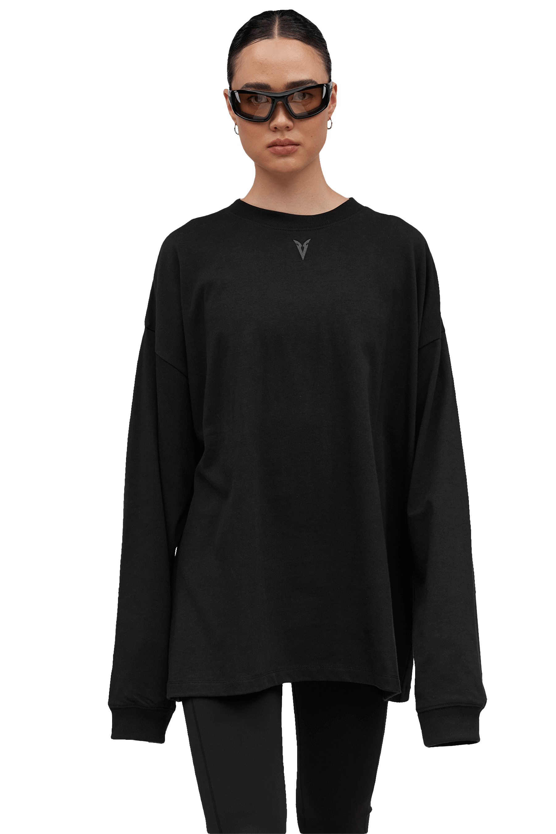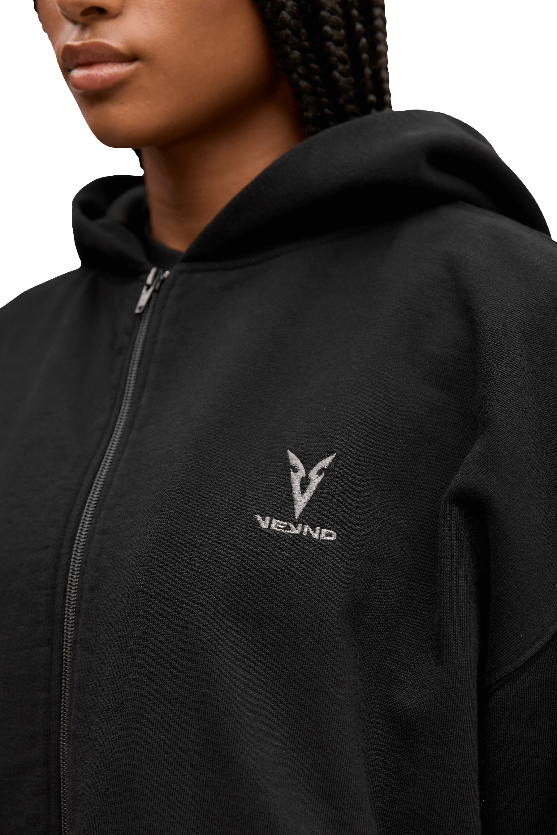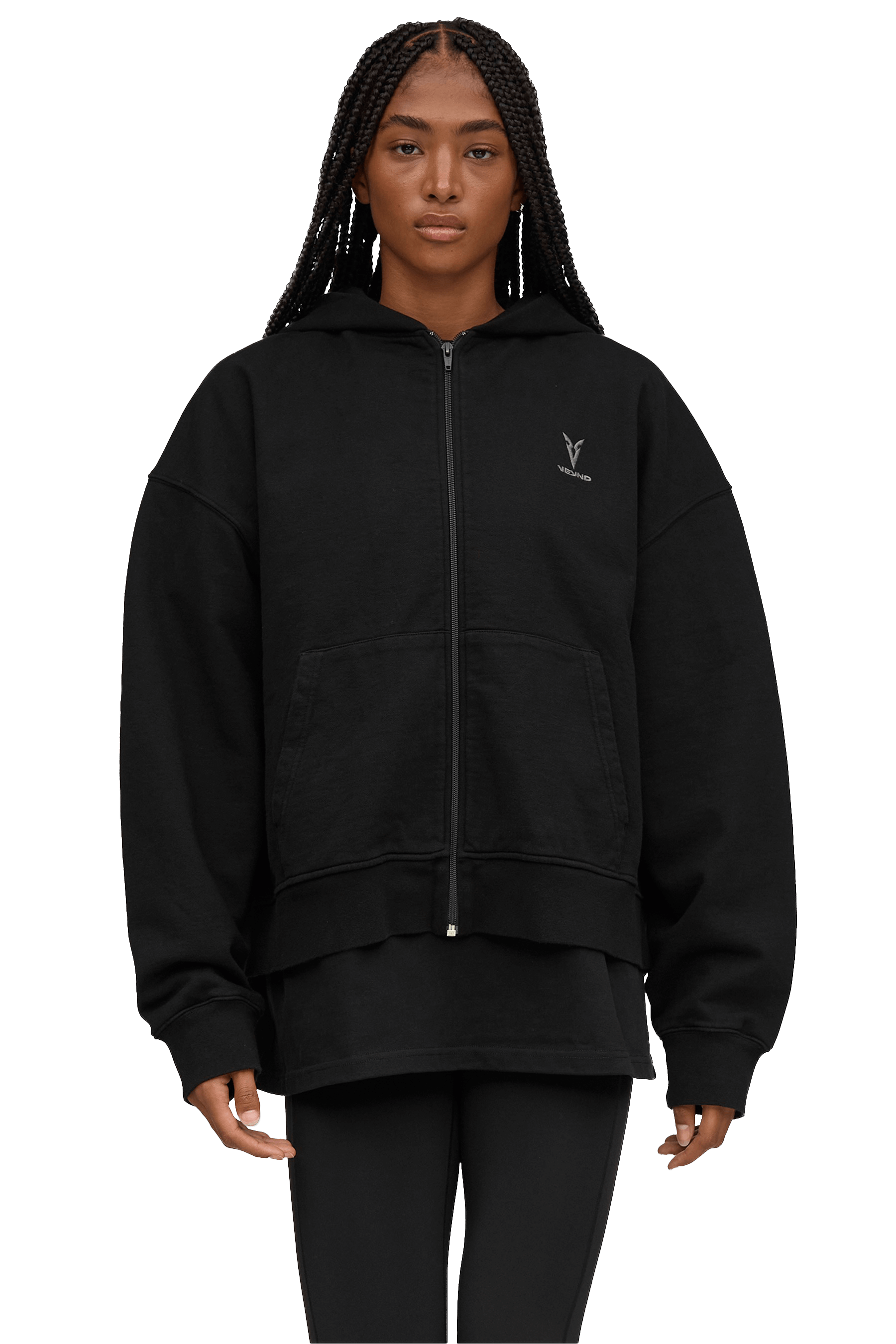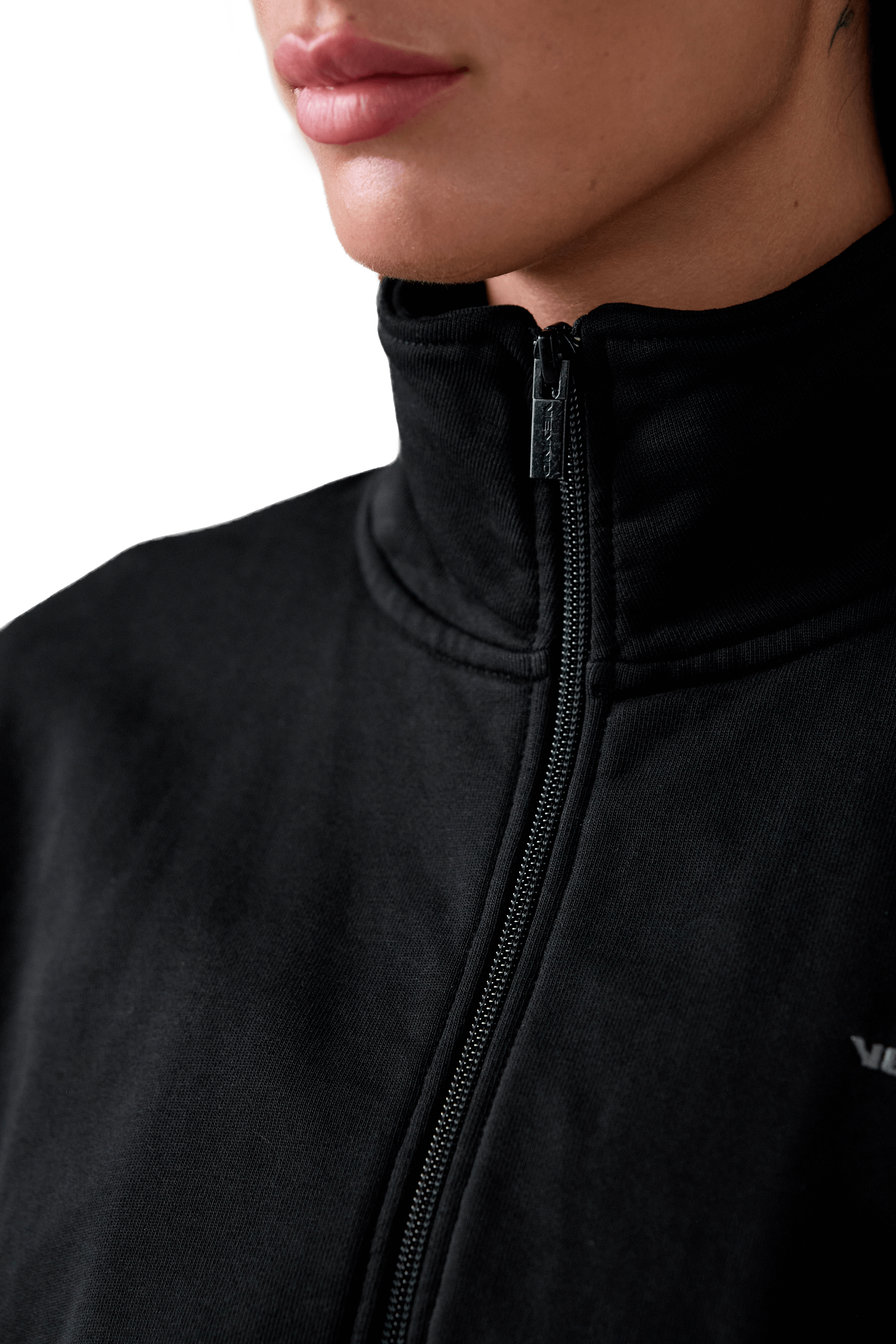 סווטשירט רוכסן מלא גזרת בוקסי- Black