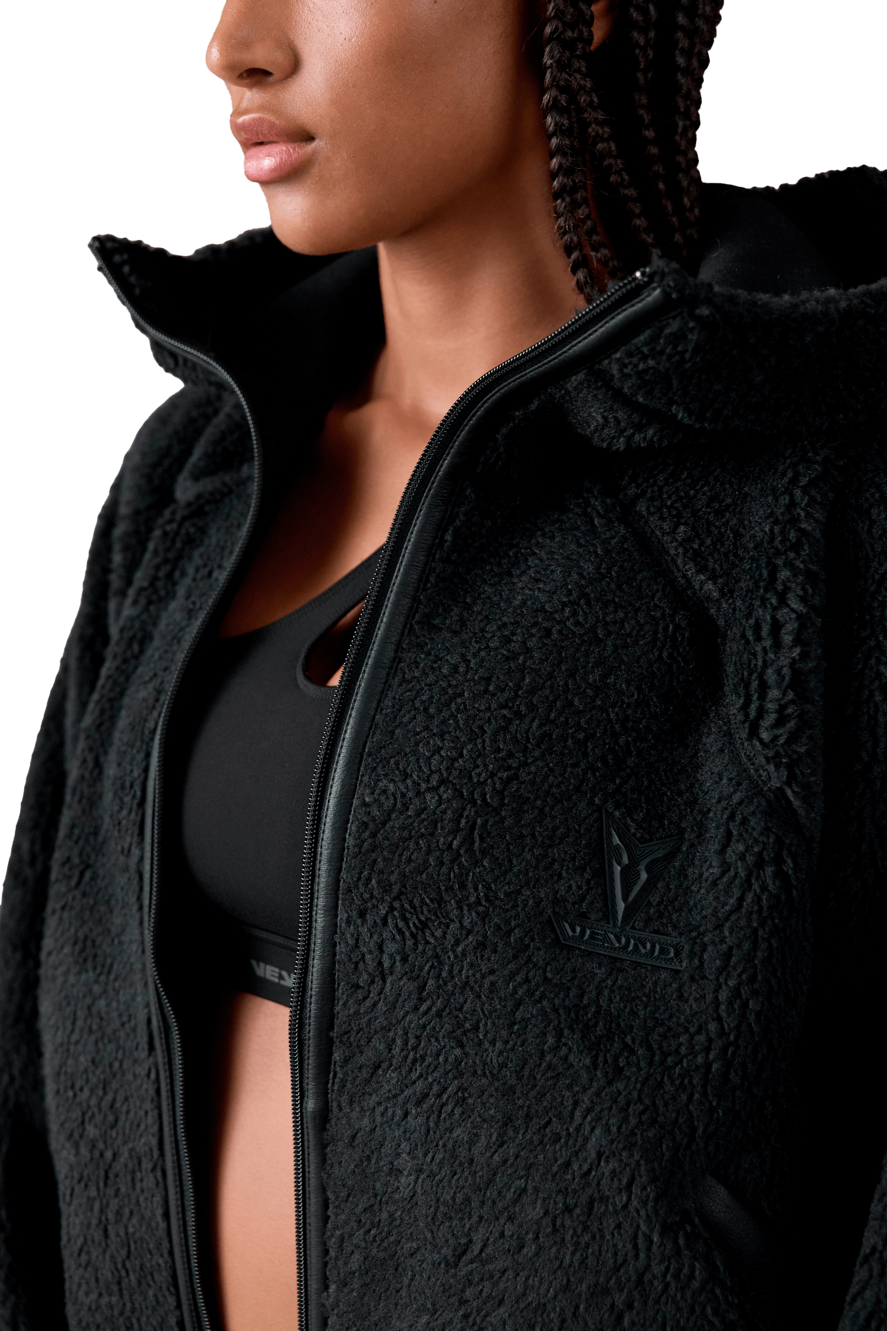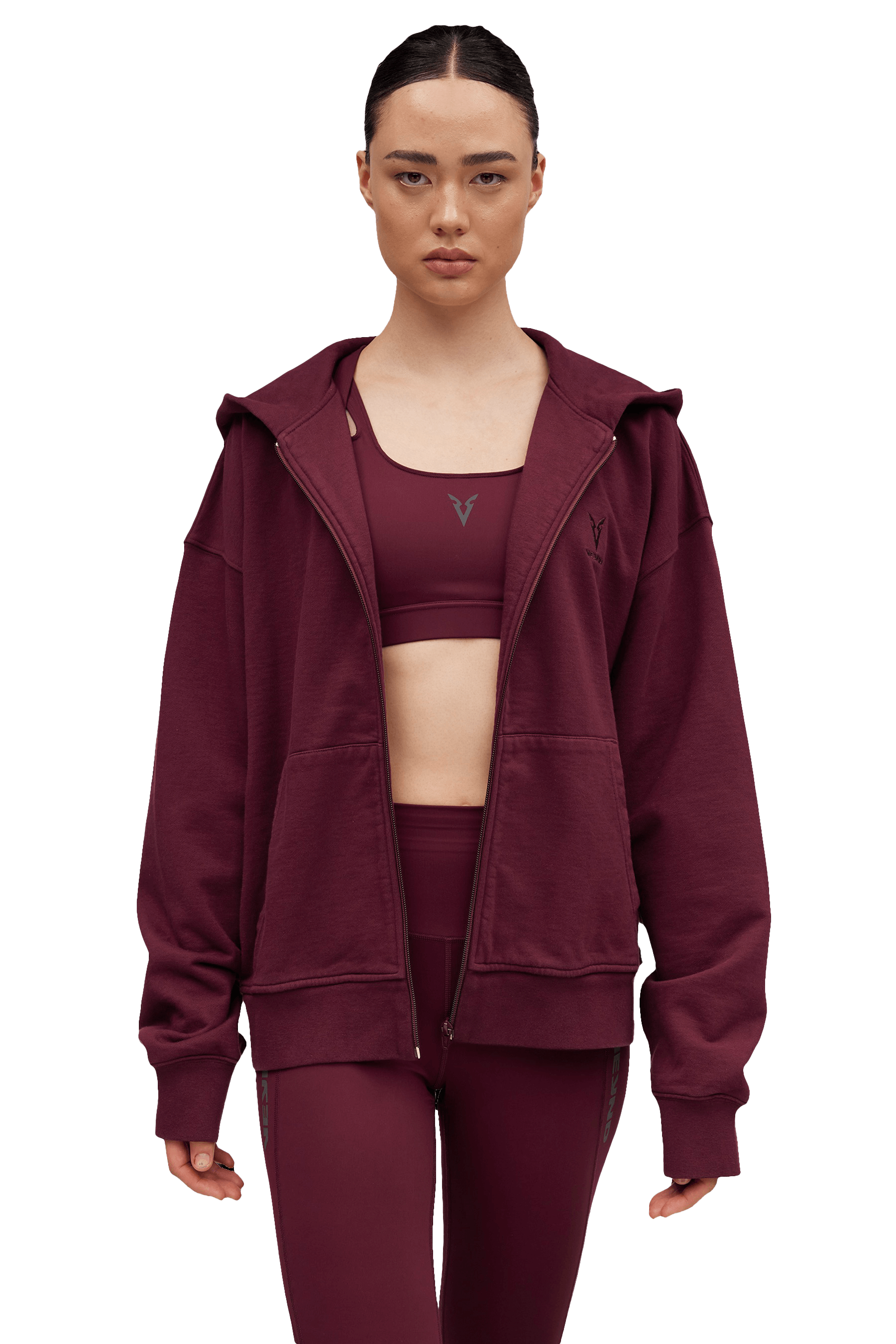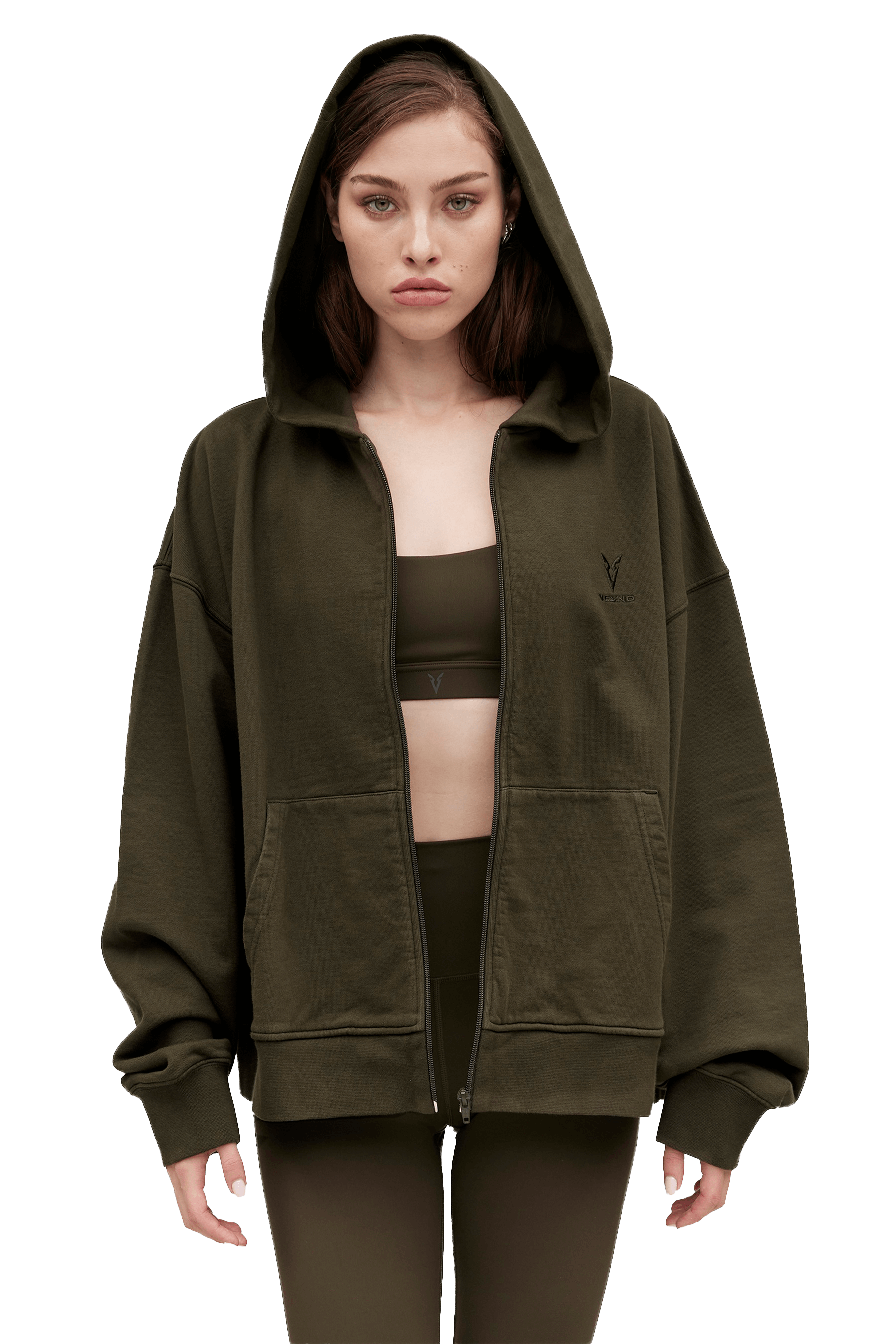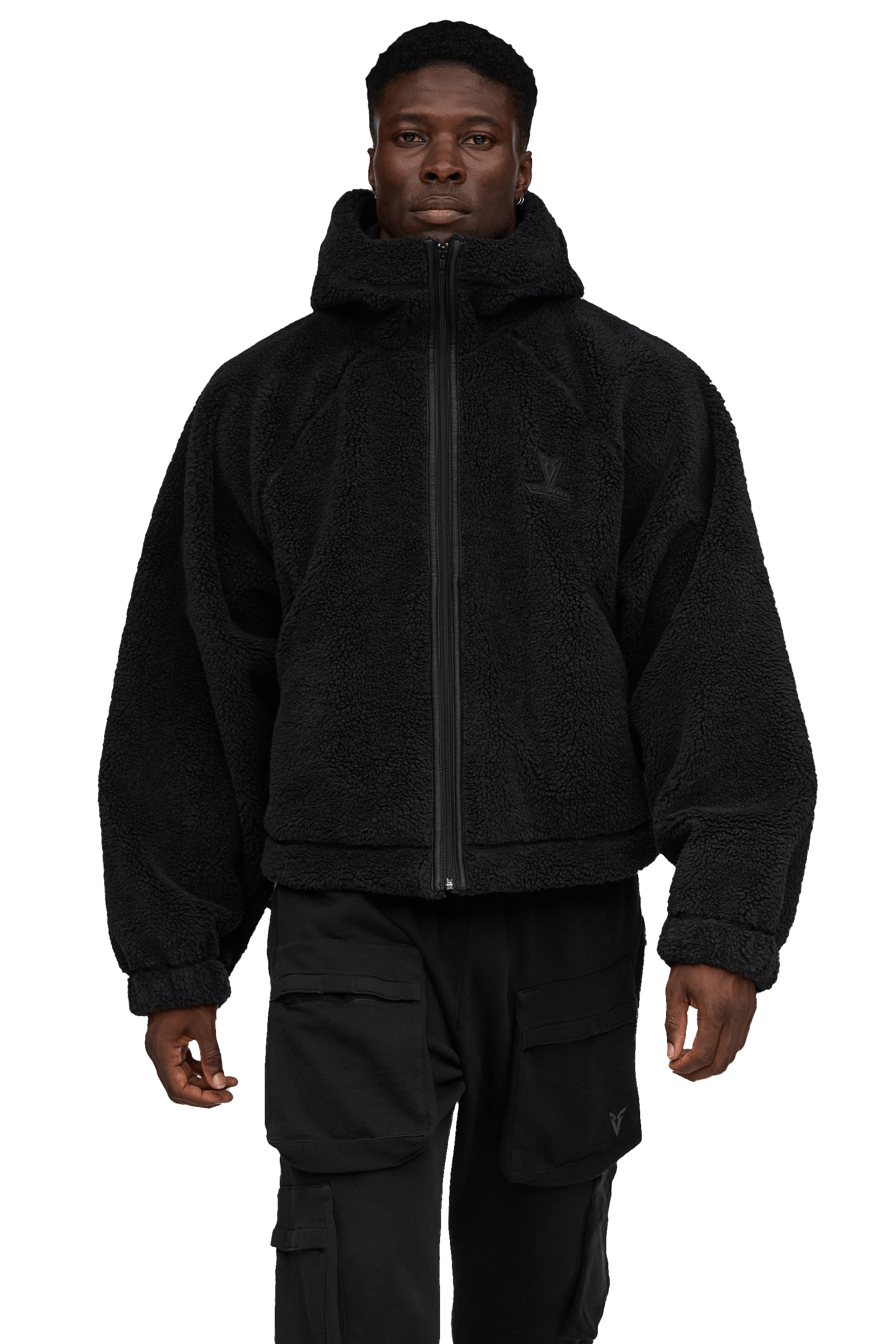 סווטשירט רוכסן מלא גזרת בוקסי- Black