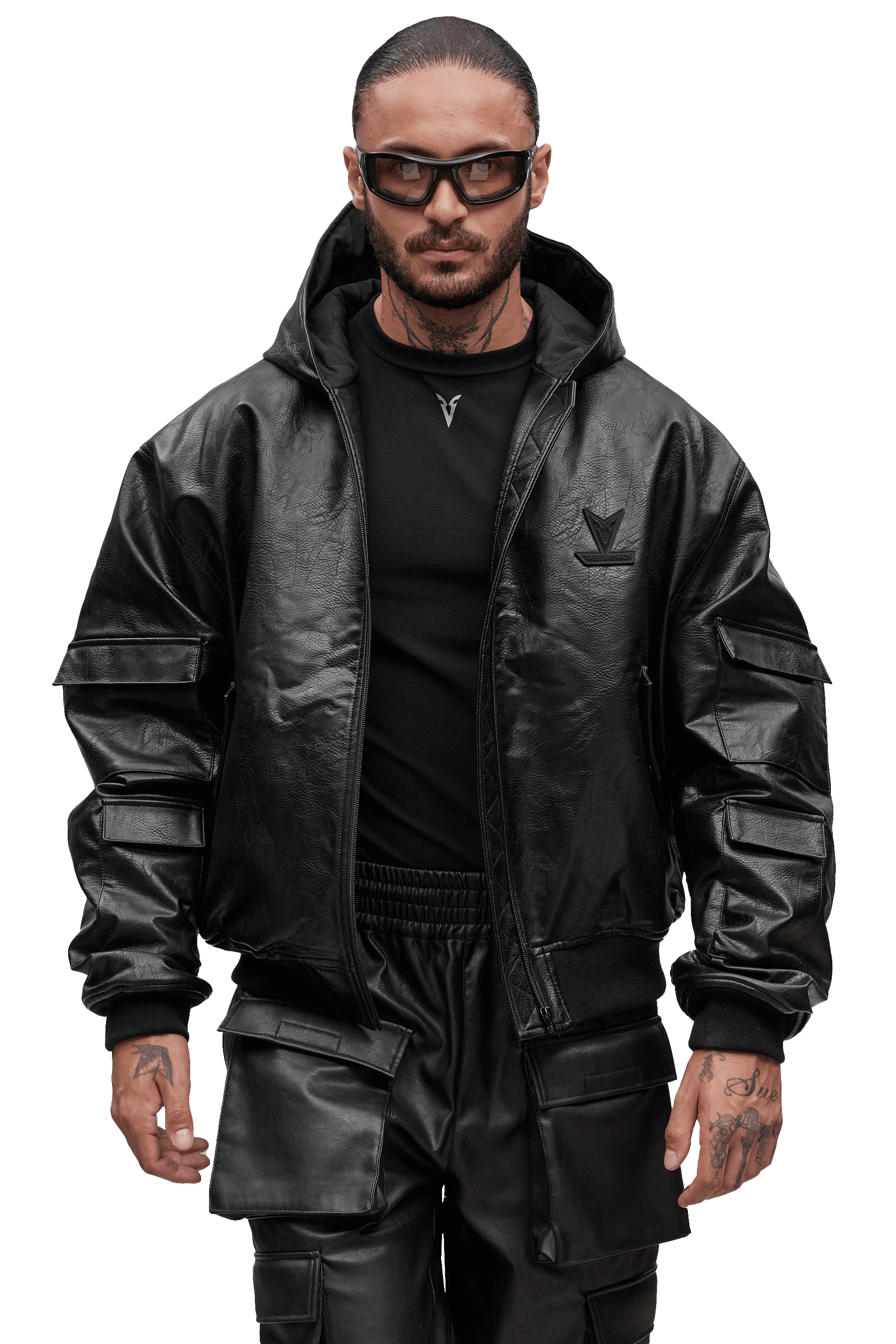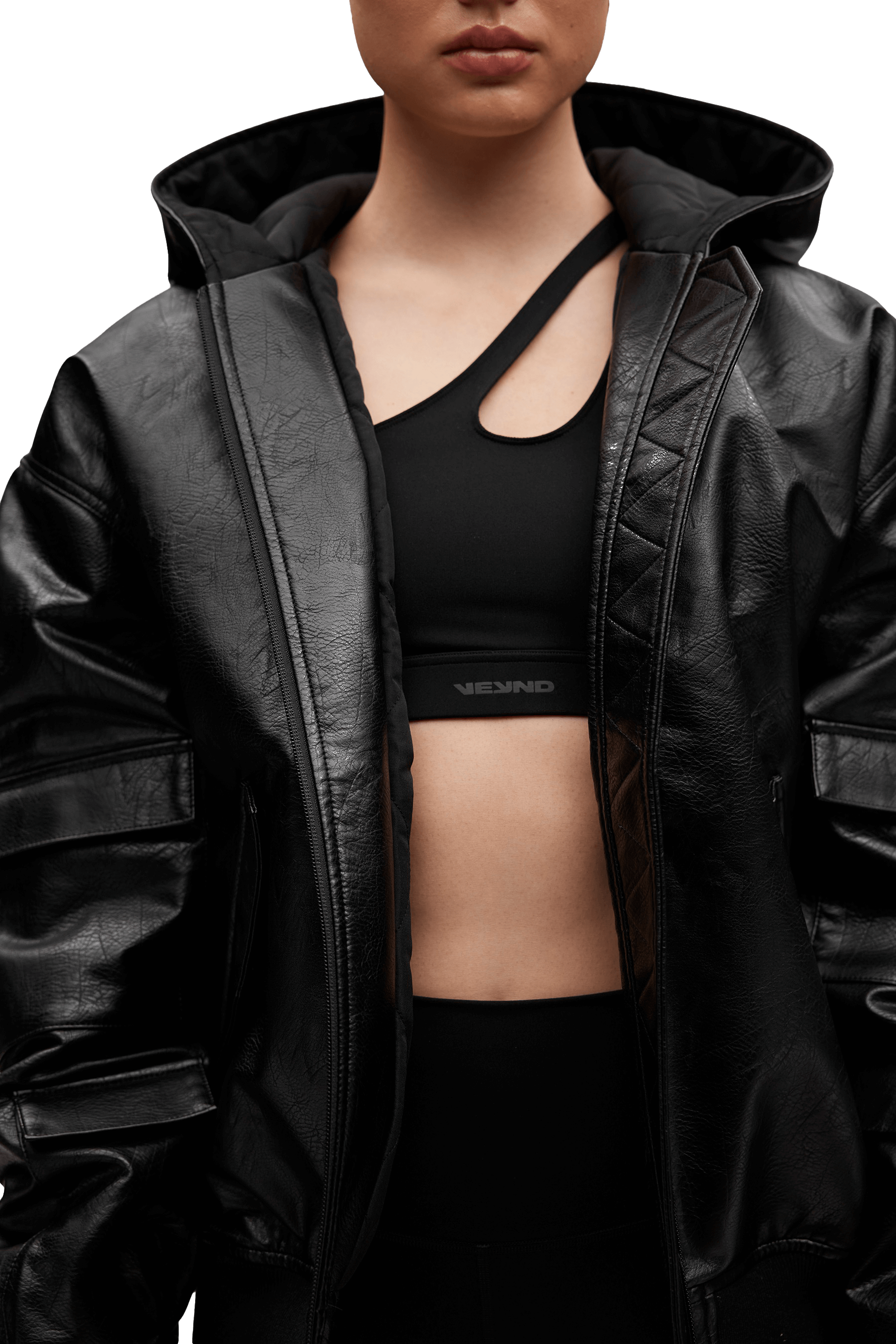 עור טבעוני מעיל בומבר גזרת בוקסי
