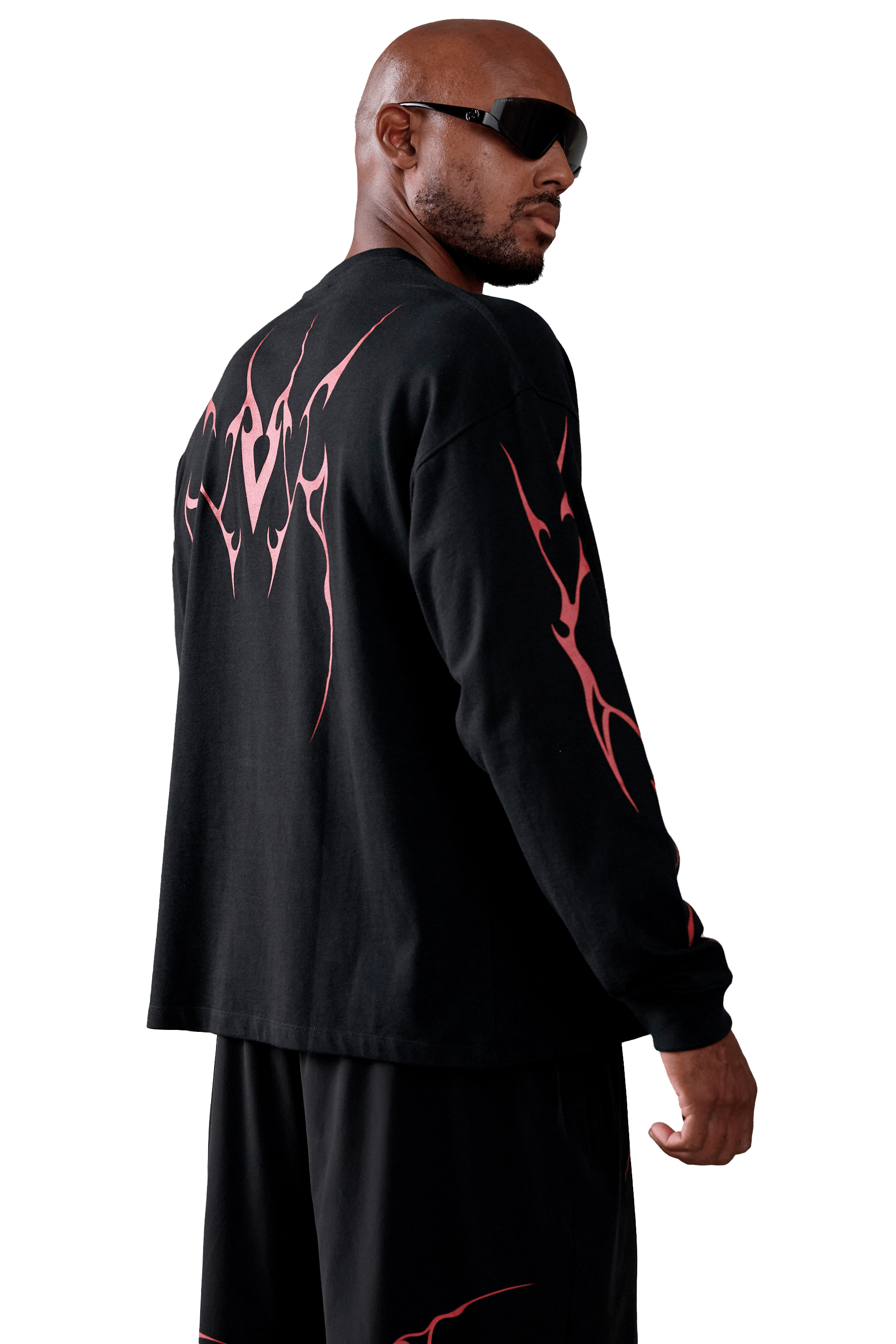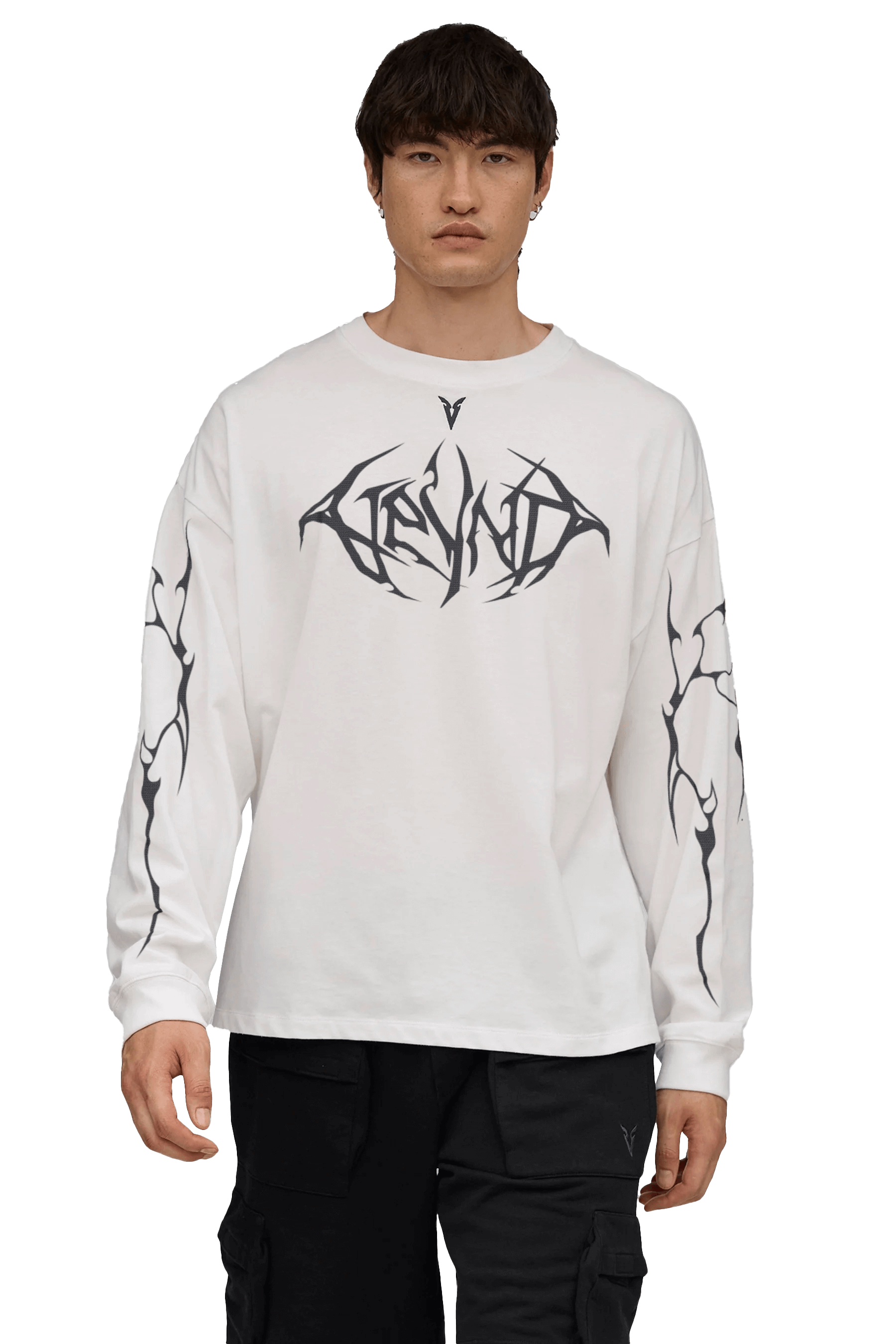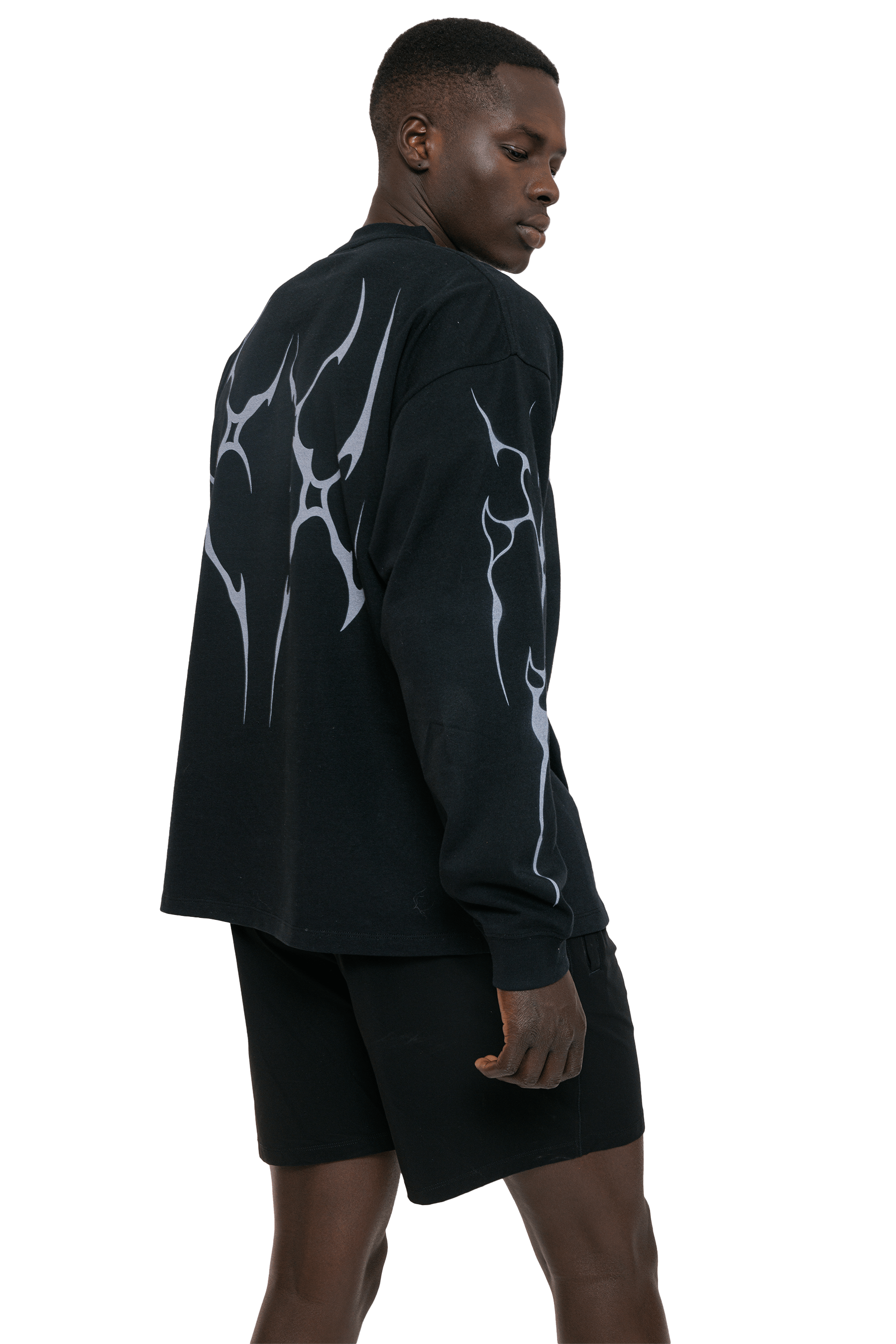 טי שירט שרוול ארוך גזרת בוקסי GRAY VEINS GRAPHIC