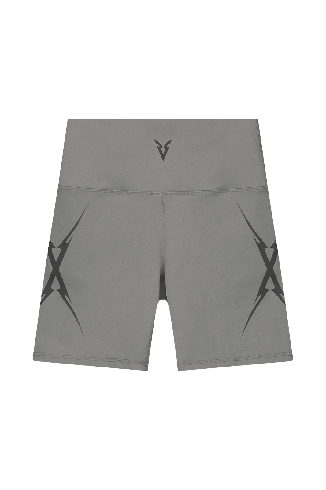 שדרגי את המלתחה שלך עם מכנסיים קצרים בגוון אפור בהיר, מבד V_SCULPT הנושם והנמתח, עם חגורת מותן מעצבת כפולה וגרפיקה ייחודית על הרגל.