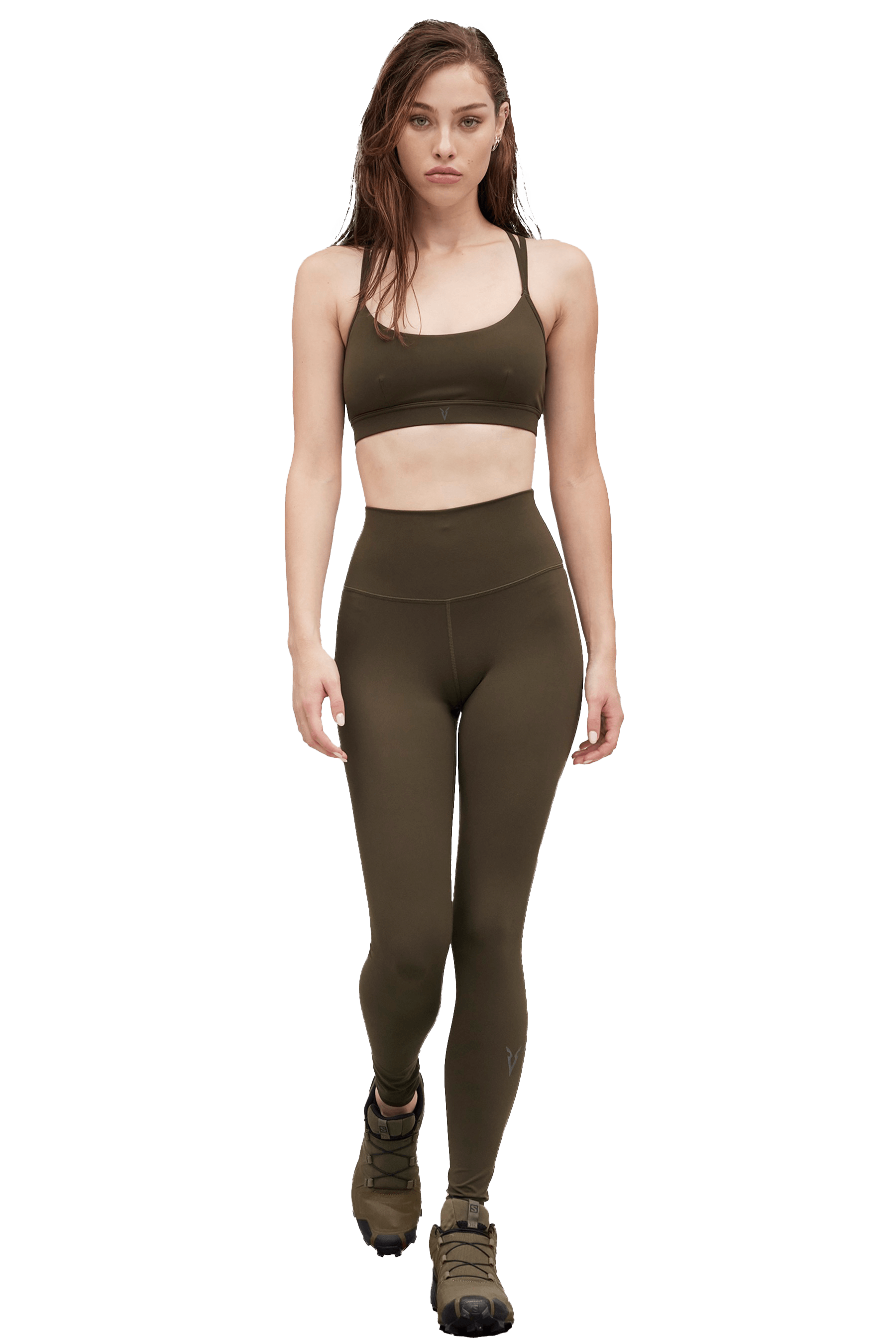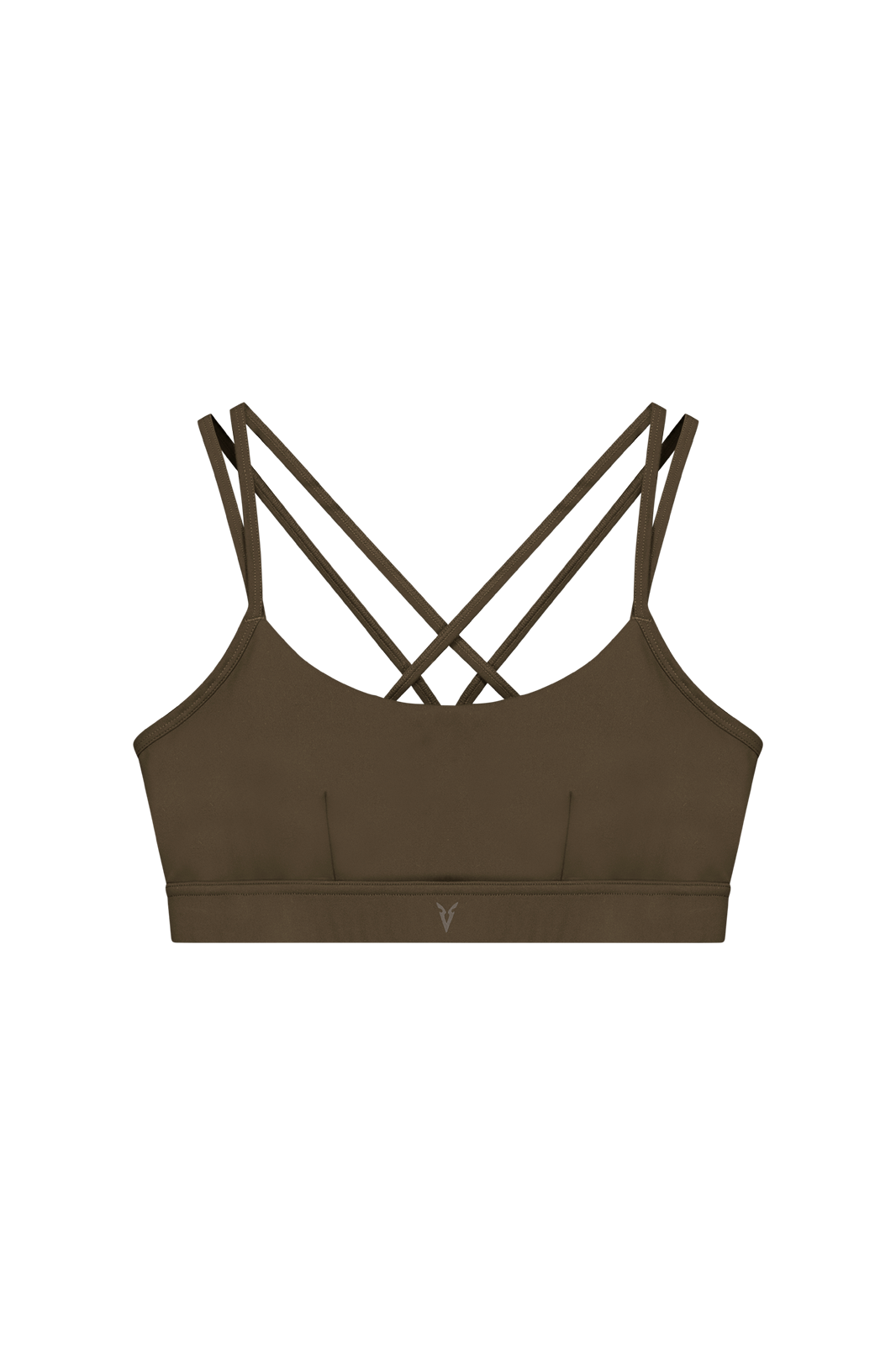 חזיית ספורט בגוון ירוק עם רצועות מוצלבות בגב. נוחה, נושמת ומותאמת לאימונים קלים או ימי קז'ואל – עם מראה נשי ועיצוב אלגנטי.